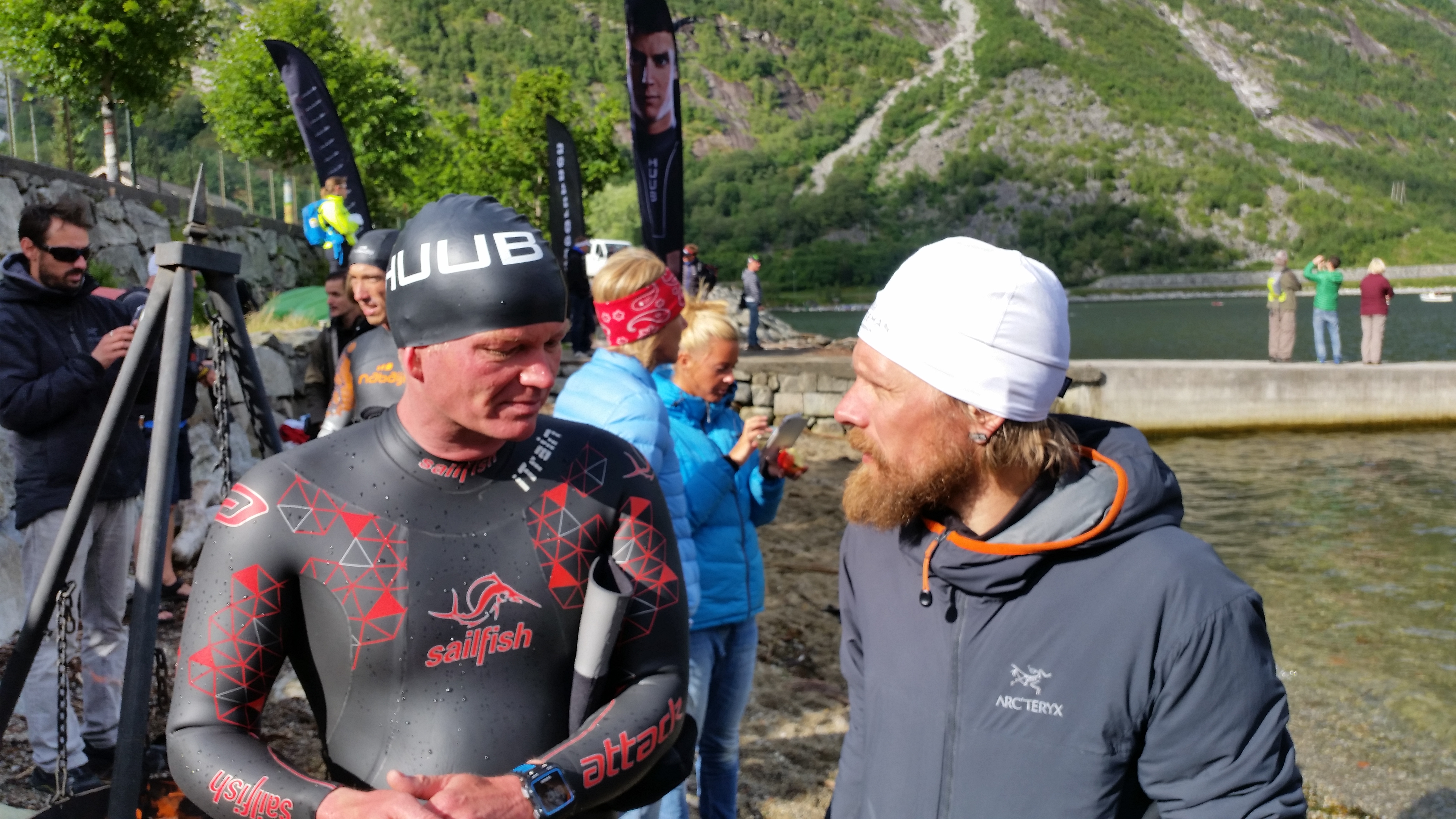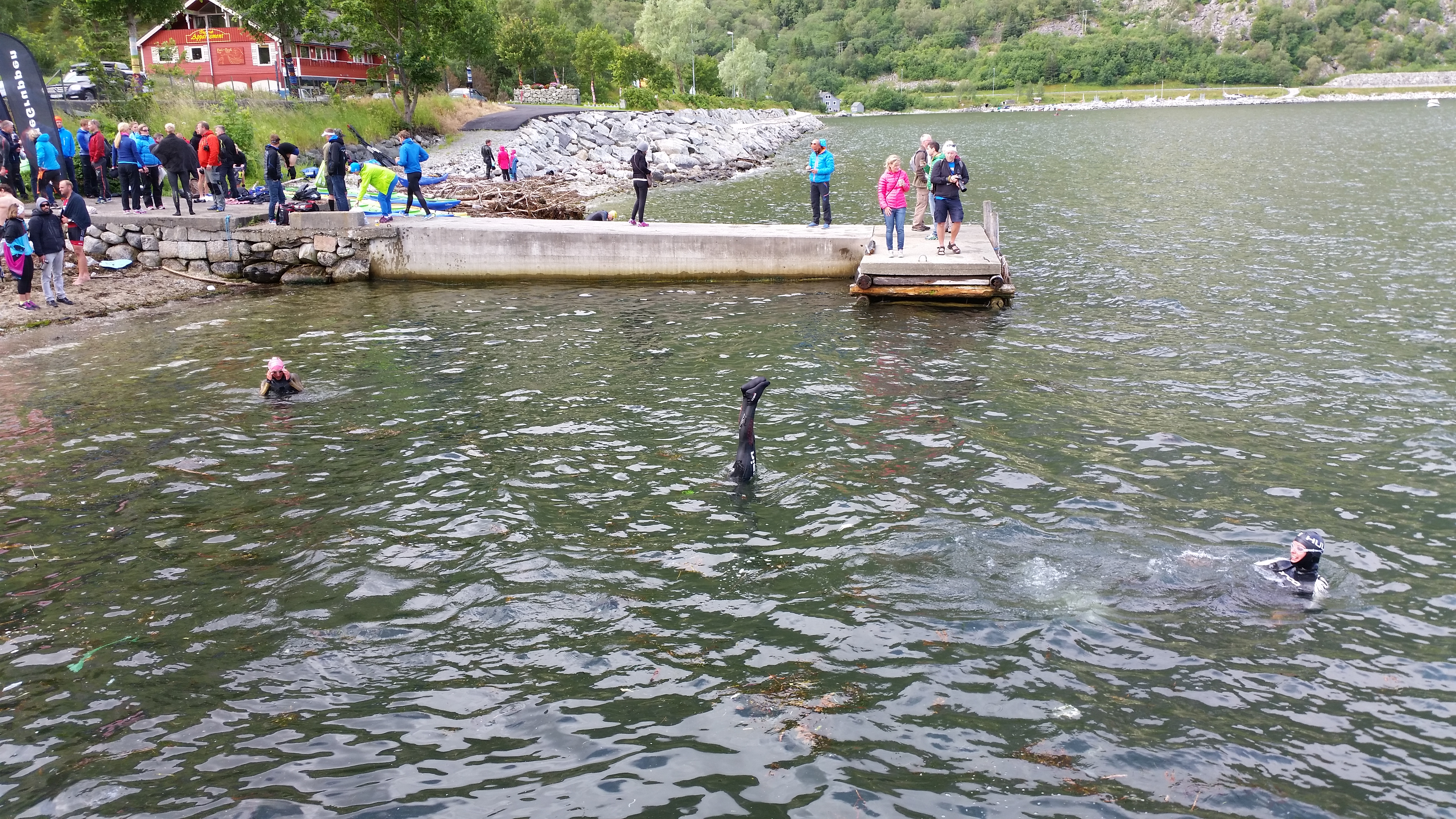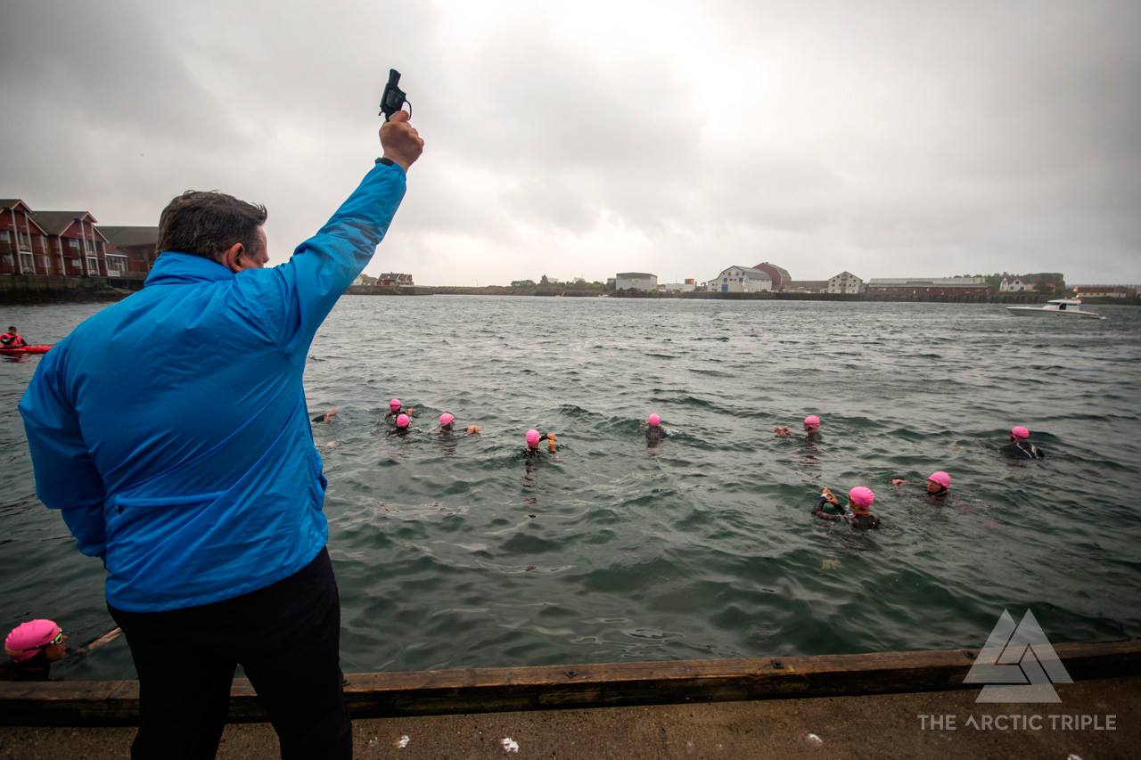 Fredag er race day for Ingvill og de andre i Olympic+ distansen. Ingvill føler seg ikke helt trygg på svømmingen og jeg har lovet å følge ho på avstand i en gummibåt jeg skal kjøpe på Europris. Europris har ikke gummibåt. Nille har ikke gummibåt. Lekebutikken har ikke gummibåt. Ingen har gummibåt, de er utsolgt. (koko, hvordan blir man utsolgt for gummibåt i Svolvær?) Jeg kjøper et balkongflagg og løper ned til XXLofoten og får heldigvis lånt meg en kajakk av de, tusen takk. Rett før start kommer jeg meg uti sjøen med kajakk og flagg, tenkte jeg måtte skille meg ut fra løypevaktene som satt i helt like kajakker. Svømmingen går kjempefint og jeg følger etter på litt avstand imens jeg prøver å filme litt uten at telefonen blir våt og heie litt med flagget uten å drive inn i løypa, heldigvis er jeg et naturtalent i kajakking, selv om jeg bare har prøvd en gang før på leirskole i 9. klasse (jeg sa jeg var svært erfaren til de jeg lånte den av).